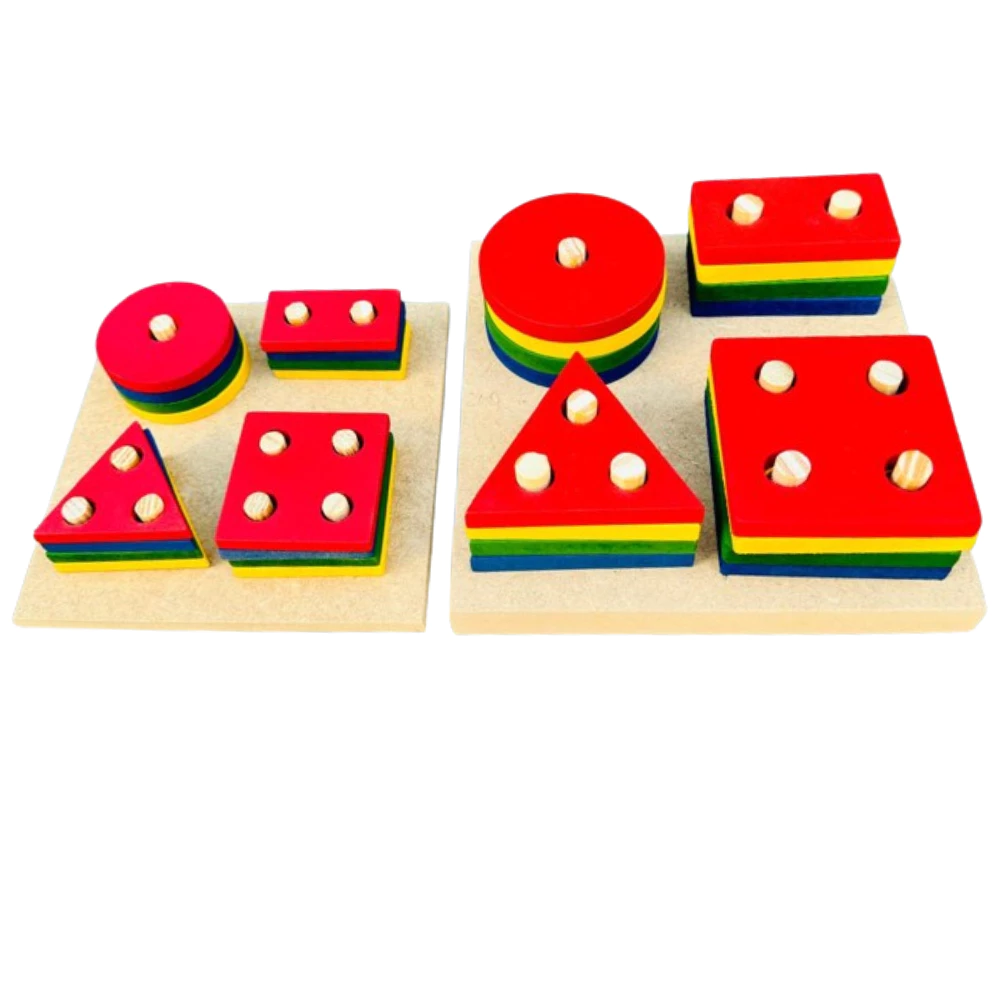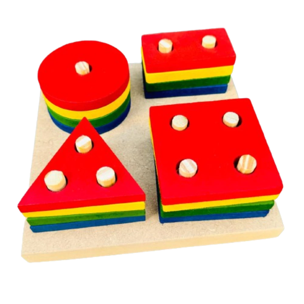 Nossa Prancha de Seleção é o brinquedo ideal para estimular as crianças a aprender brincando! Com 16 peças de formas geométricas coloridas, as crianças podem empilhar e encaixar de acordo com o número de buracos no meio de cada forma.